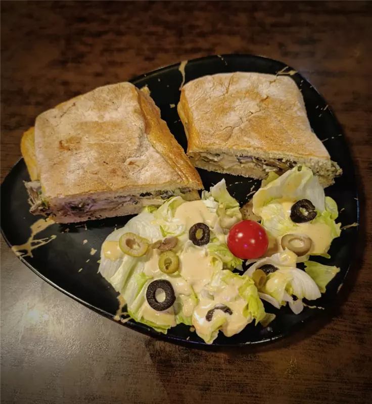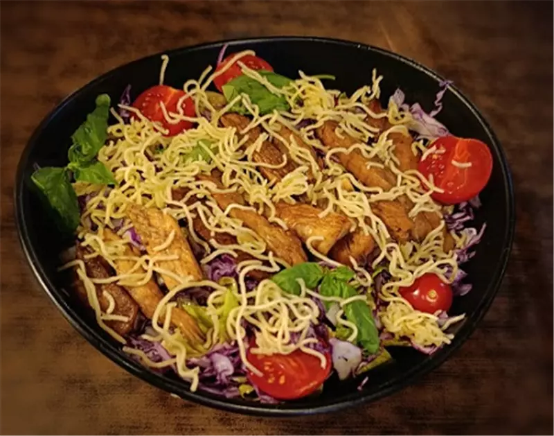 کاهو ، خیار ، گوجه ، فیله سوخاری مرغ ، .....