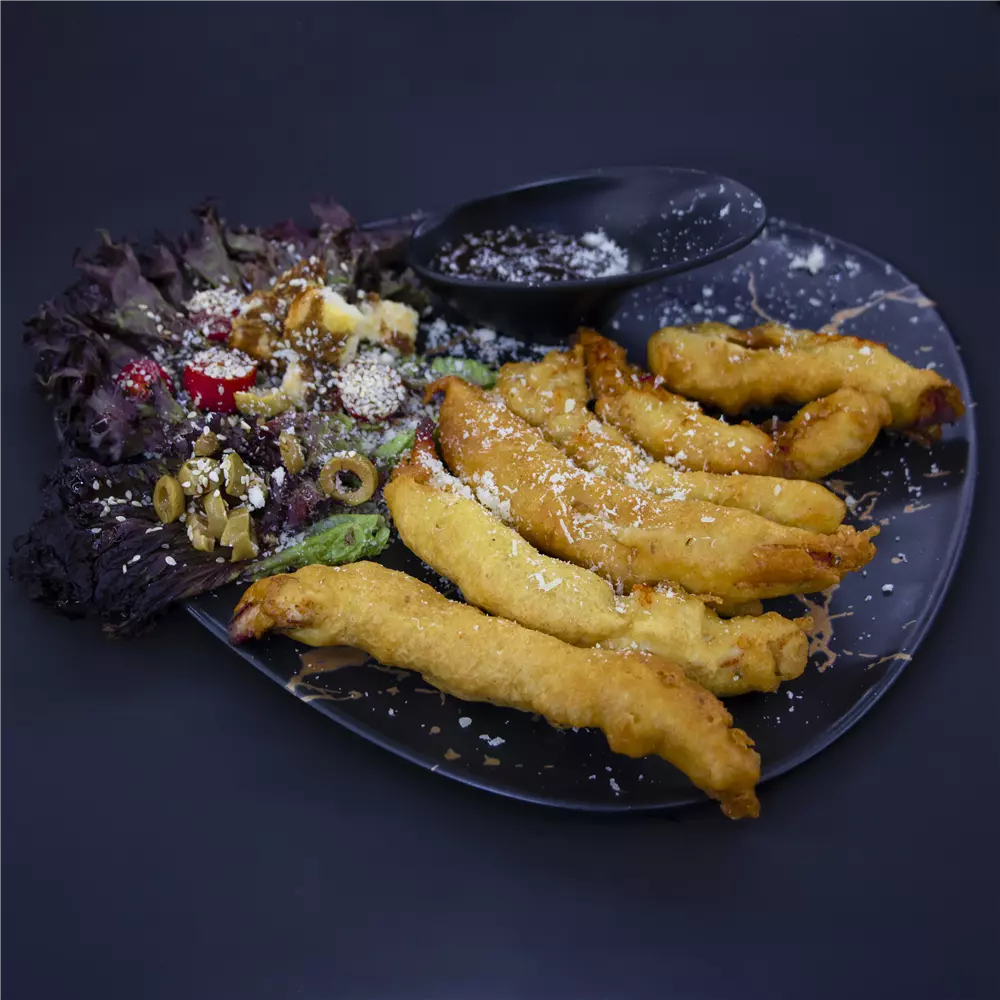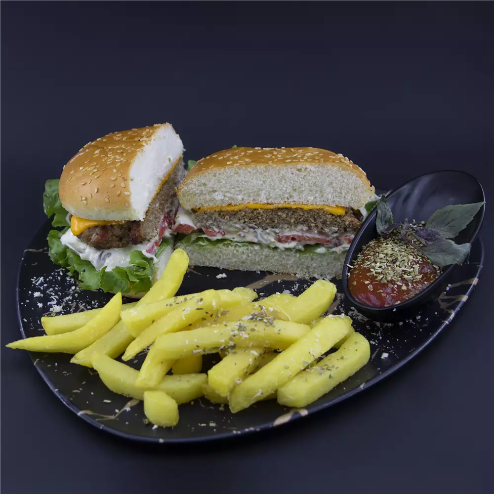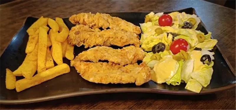 200 گرم فیله مرغ کریپسی شده ، سیب زمینی ،