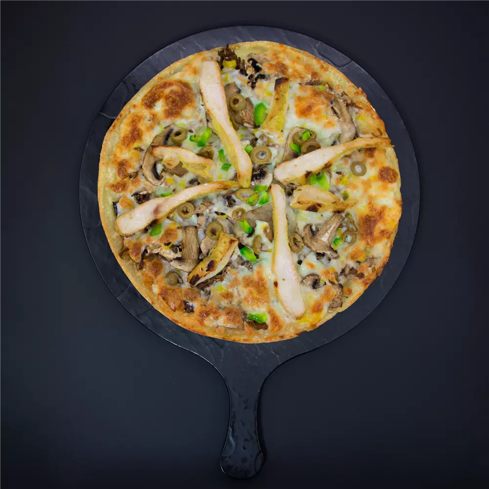تکه های مرغ ، فلفل دلمه ، قارچ ، سس الفردو ، پنیر