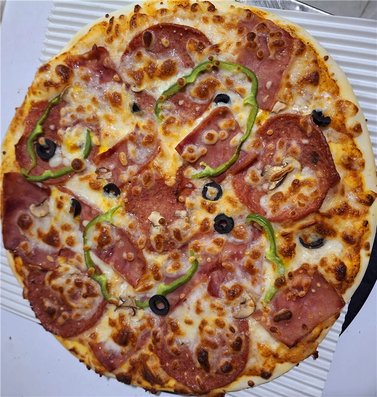 پپرونی 90 درصد ، هالوپینو تند ، زیتون اسلایس شده ،