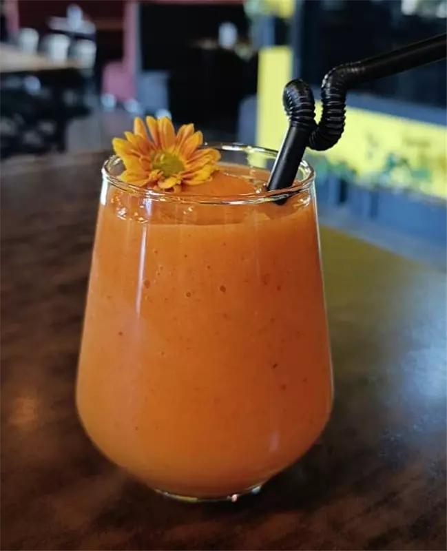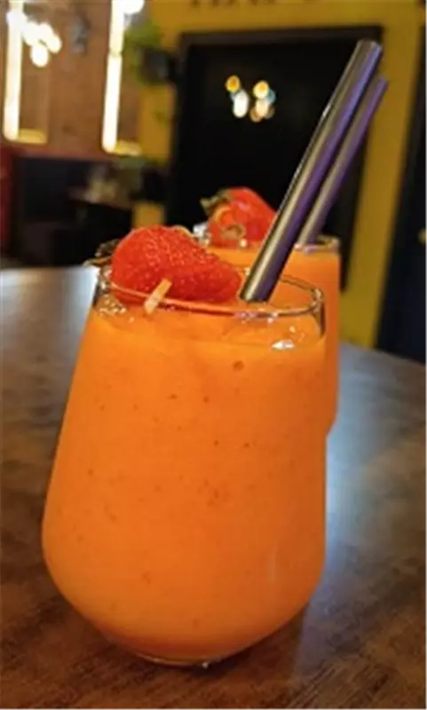 انبه، اناناس ، پرتقال تو سرخ ، لیمو پودر نارگیل ، پنیرک و سیروپ